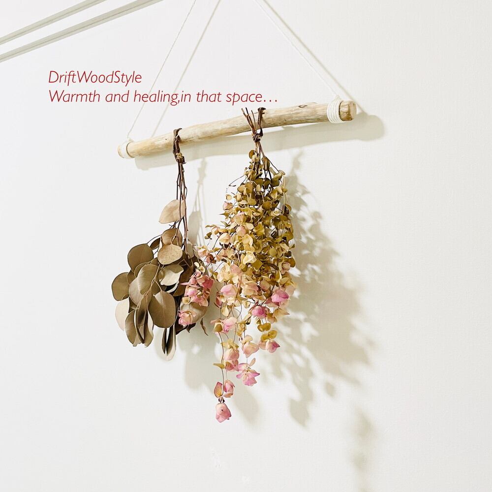 壁に流木のハンガーフックを飾るだけで,温かみが増しお部屋の雰囲気が変わります。