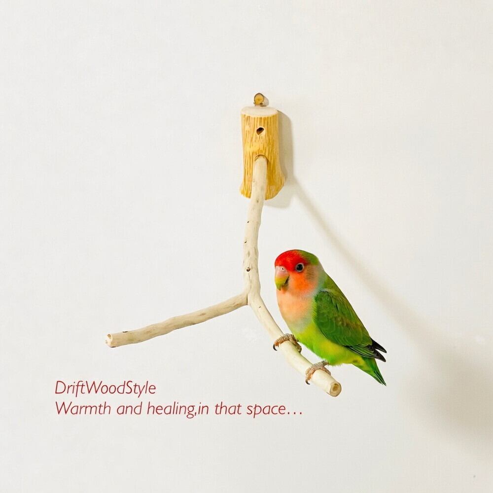Y字の流木枝を使った小鳥の止まり木 インコの壁掛けパーチ ピン止め+ビス止め両タイプ N16