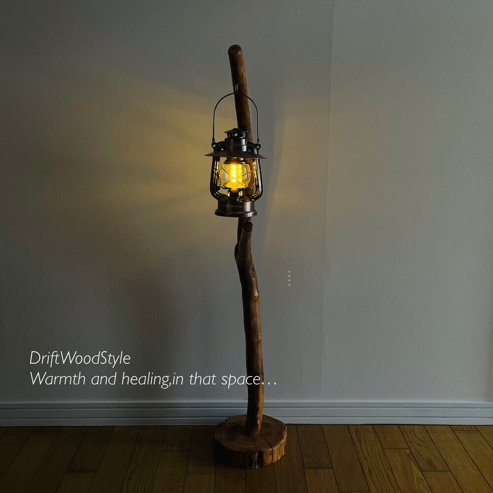 流木インテリア 斜めに枝が突き出る流木スタンド ランタンやエアプラントを飾れる置物 北欧 照明 木材 癒し N120