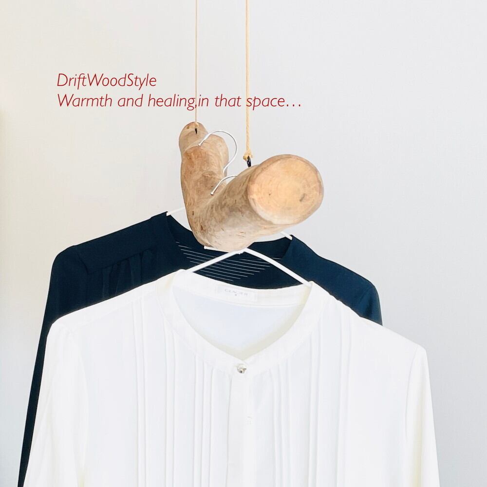 太い流木で作成しているため、ハンガーのフックがかけられない場合もあります。