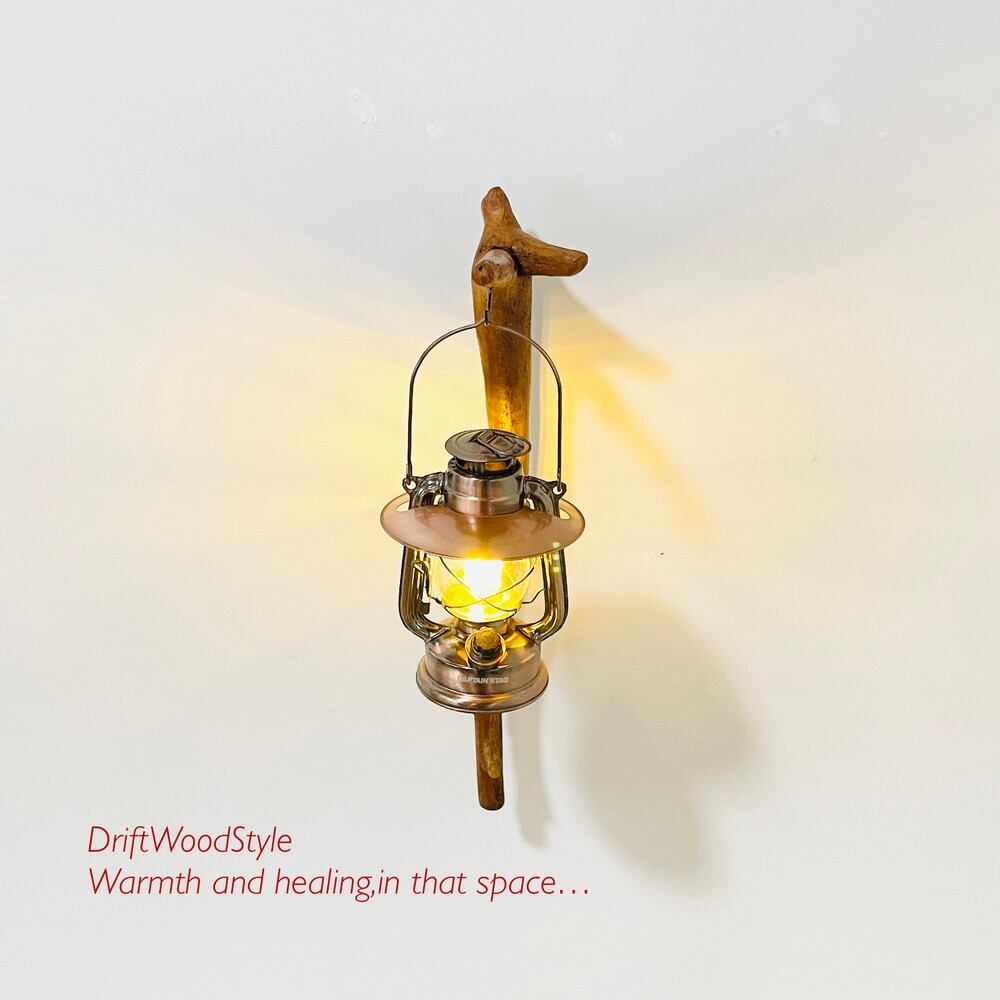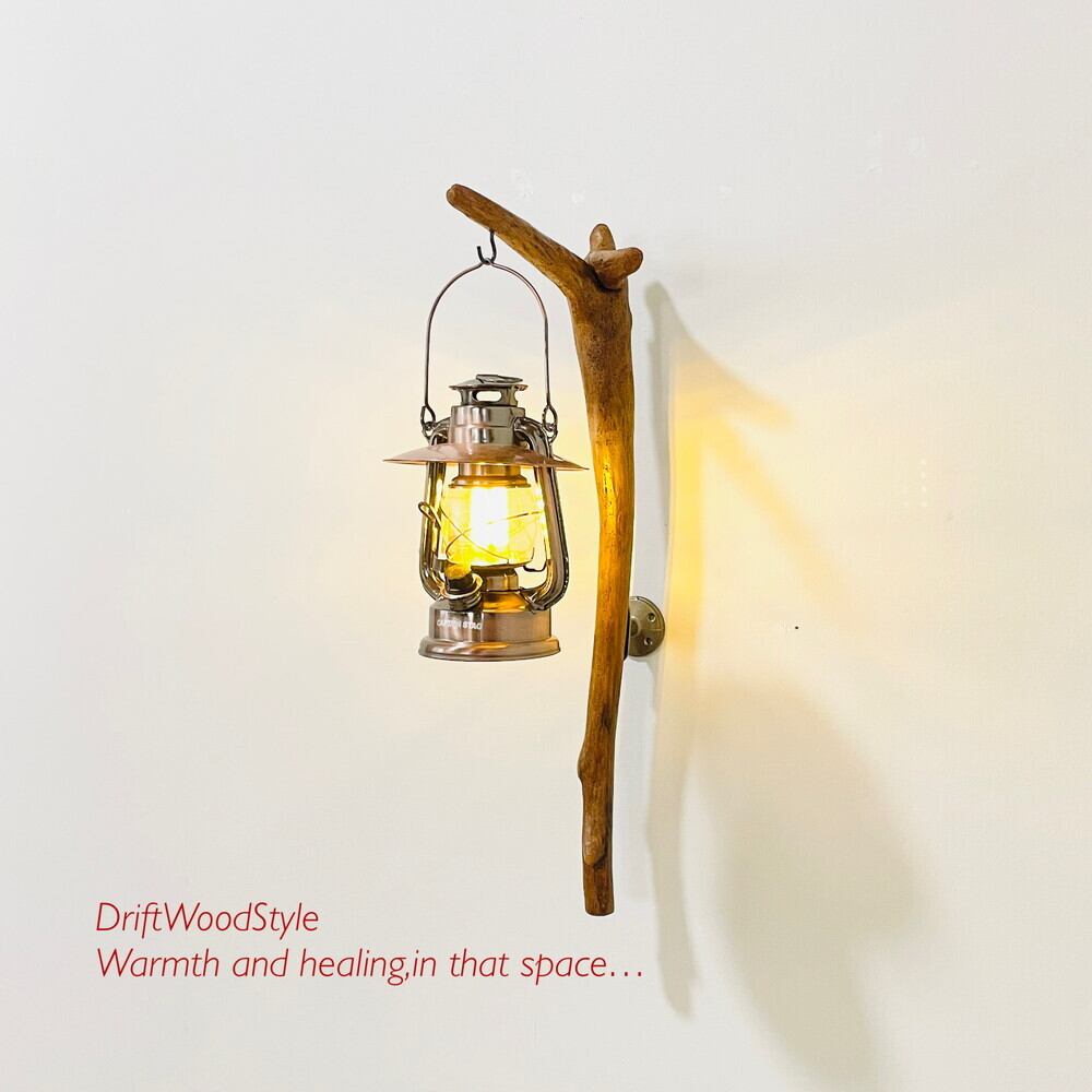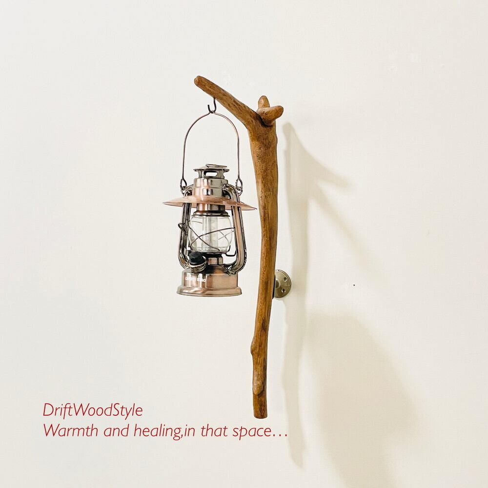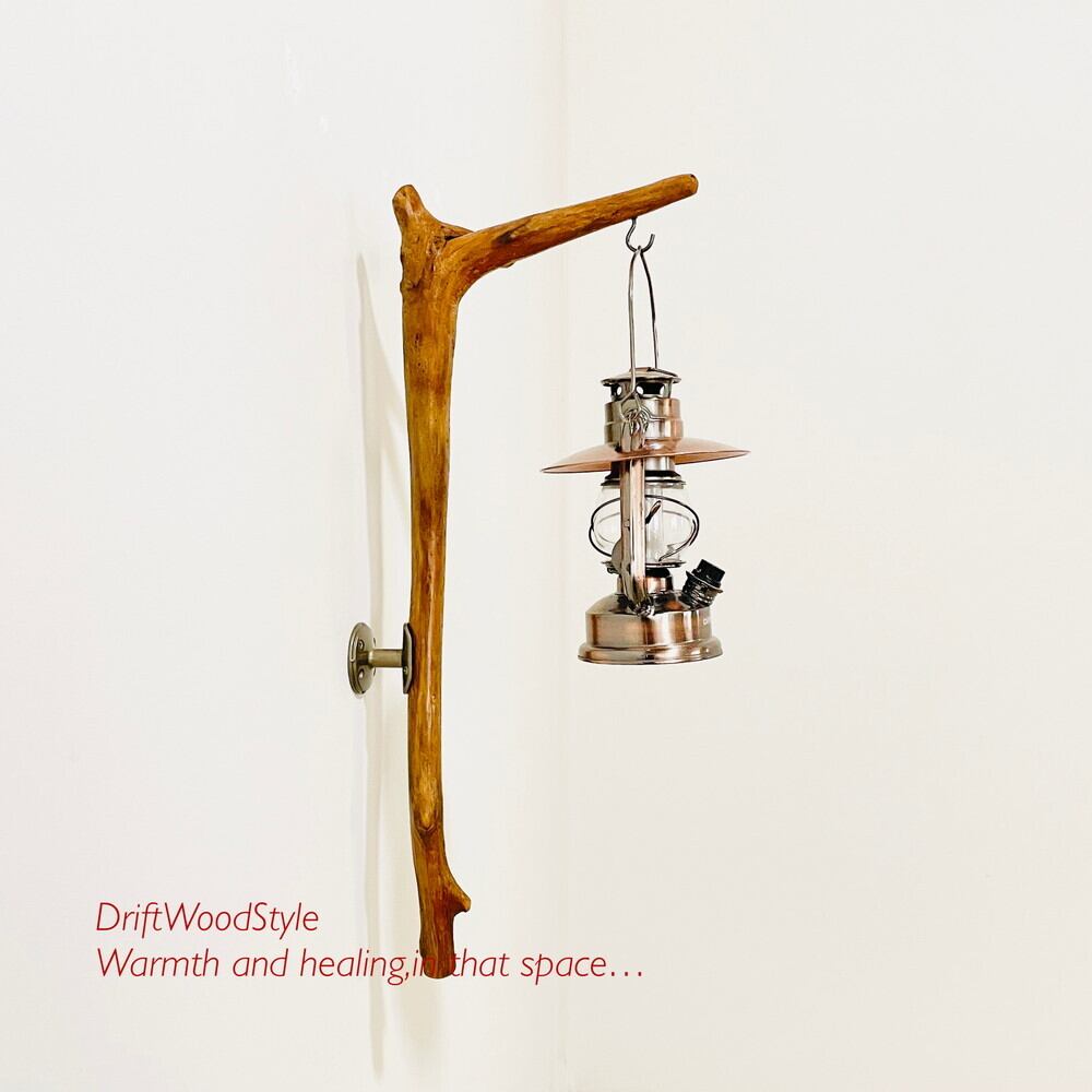 ランプや小物を飾れる天然流木の壁掛け流木スタンドです。