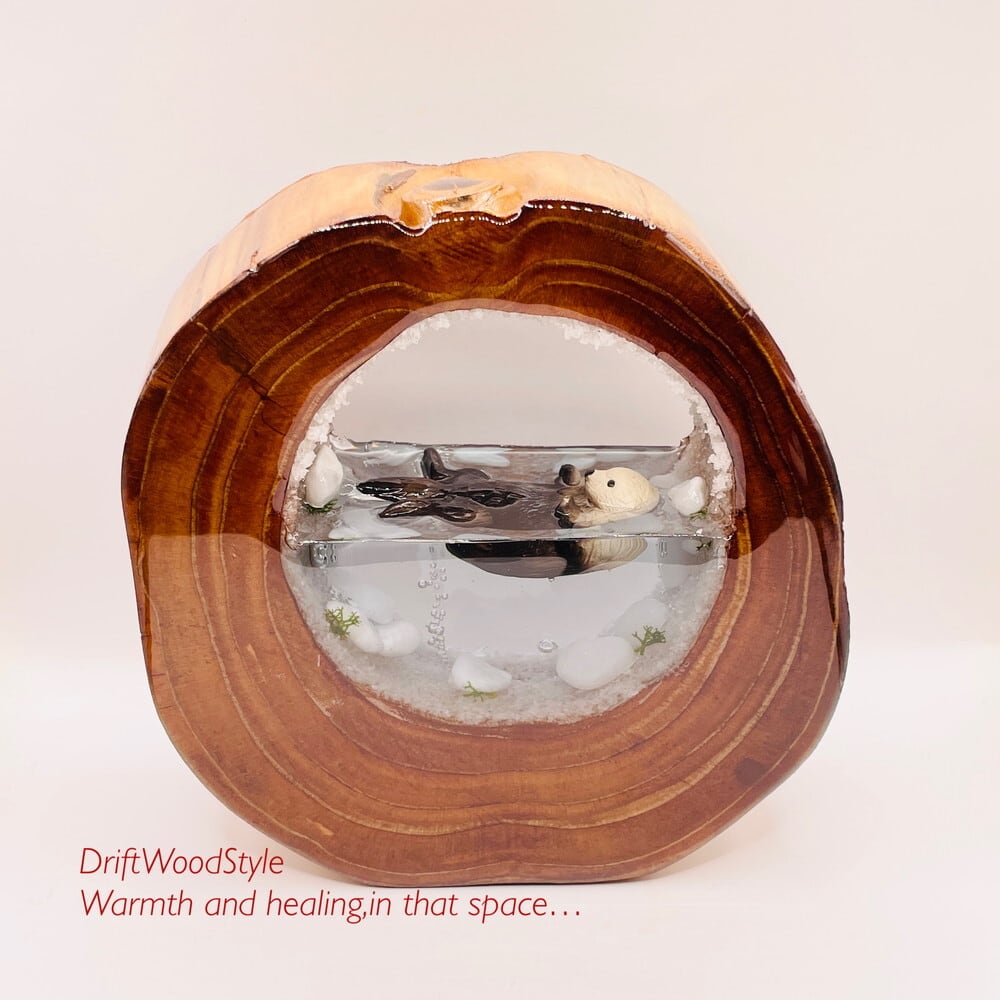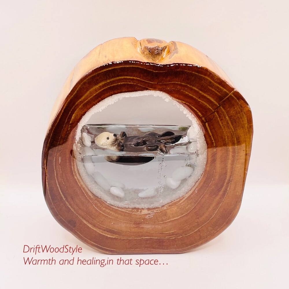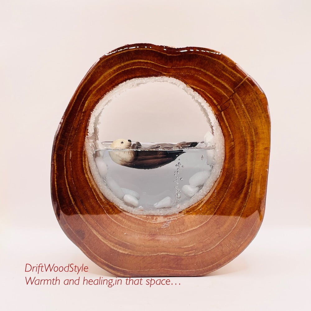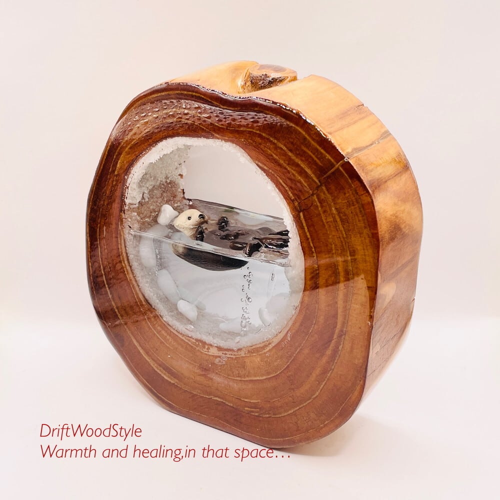 一つ限りの流木アート 海に浮かぶラッコ ジオラマ 流木 フィギュア 置物 インテリア レジン テラリウム 生き物 N40