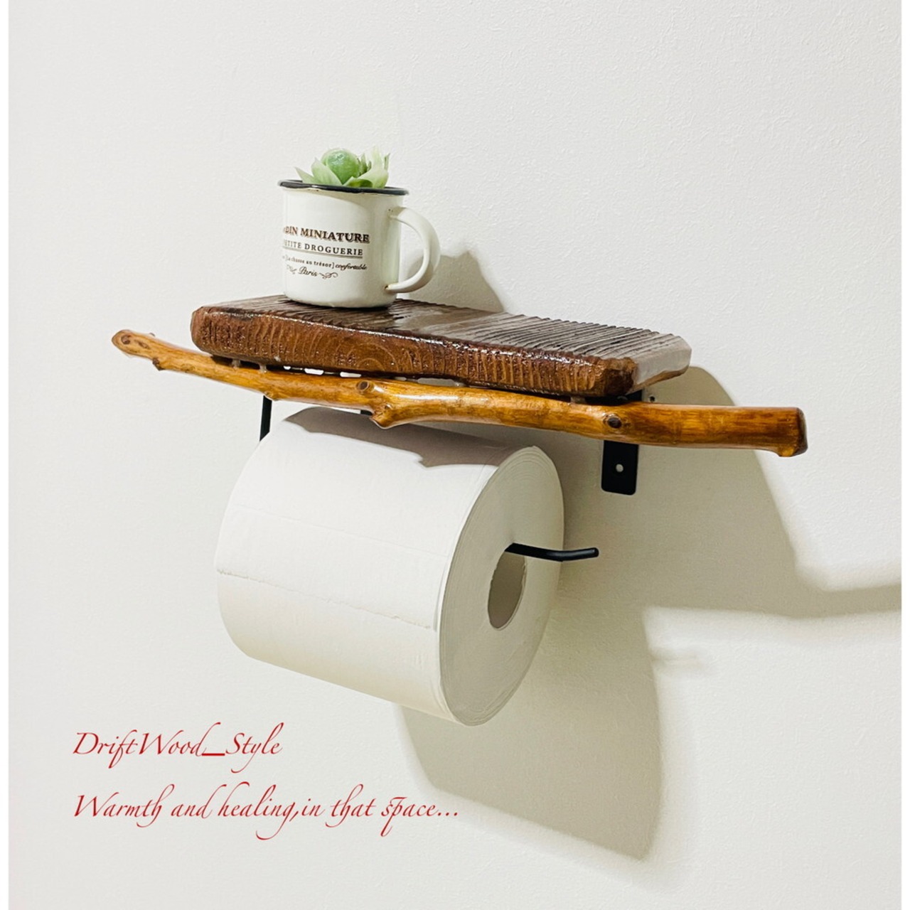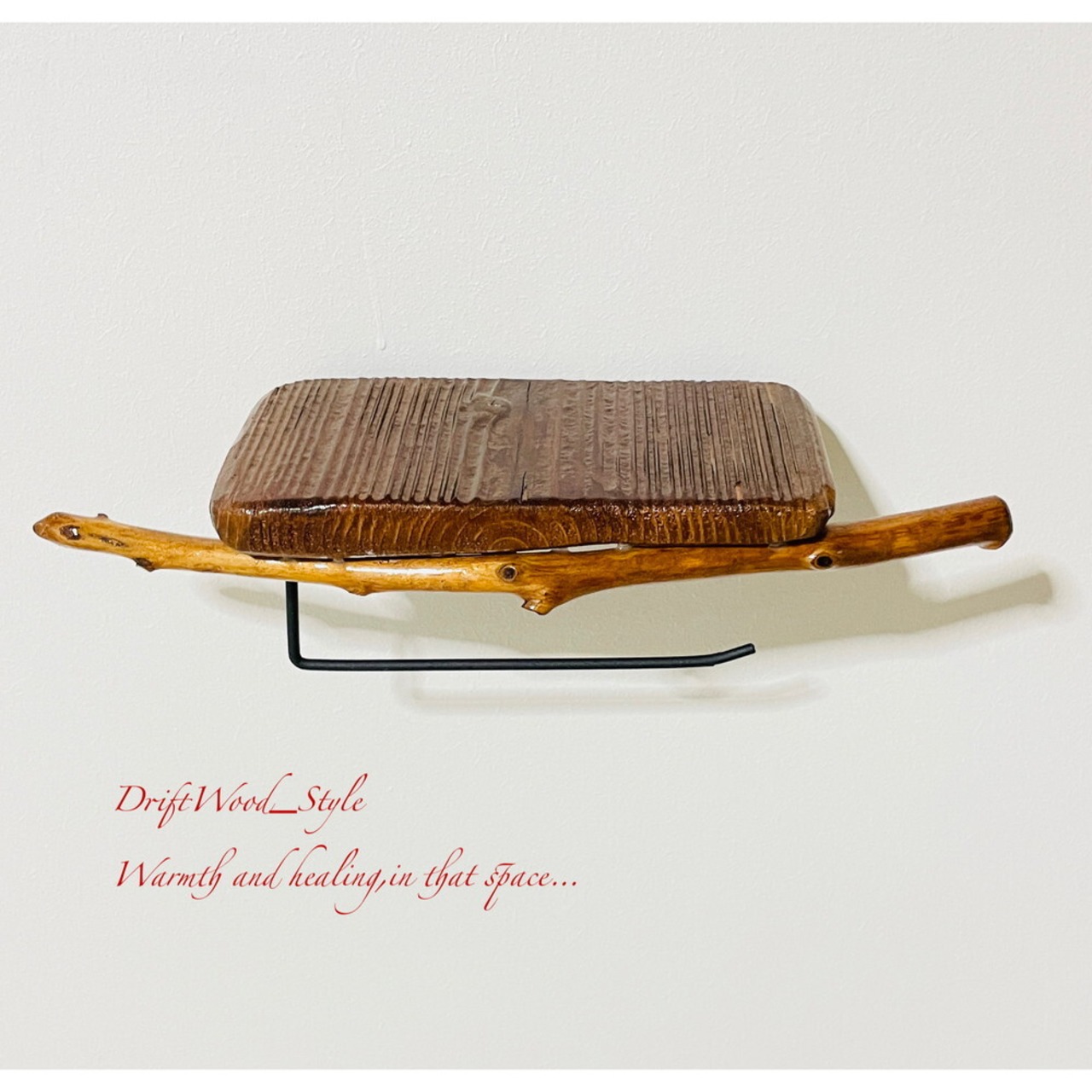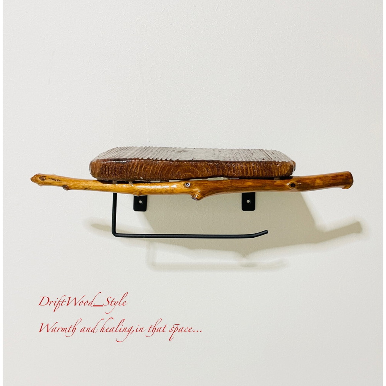 流木板のトイレットペーパーホルダーになります。