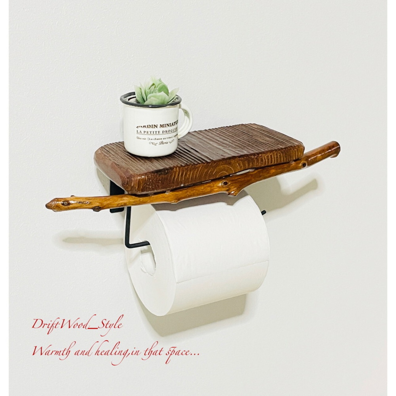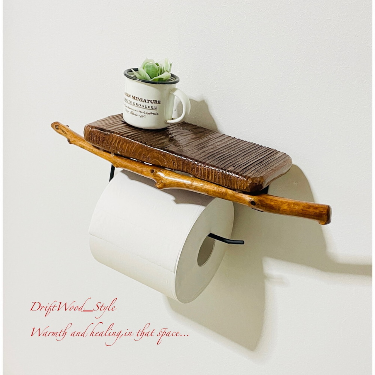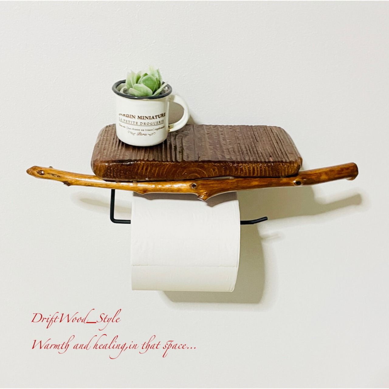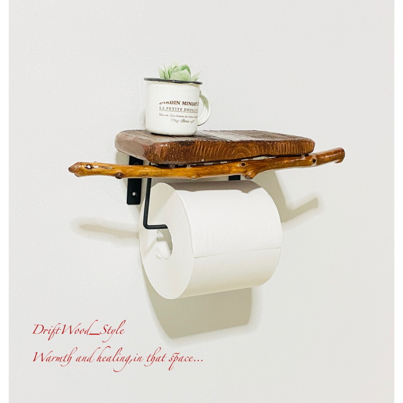 流木板のトイレットペーパーホルダーになります。
