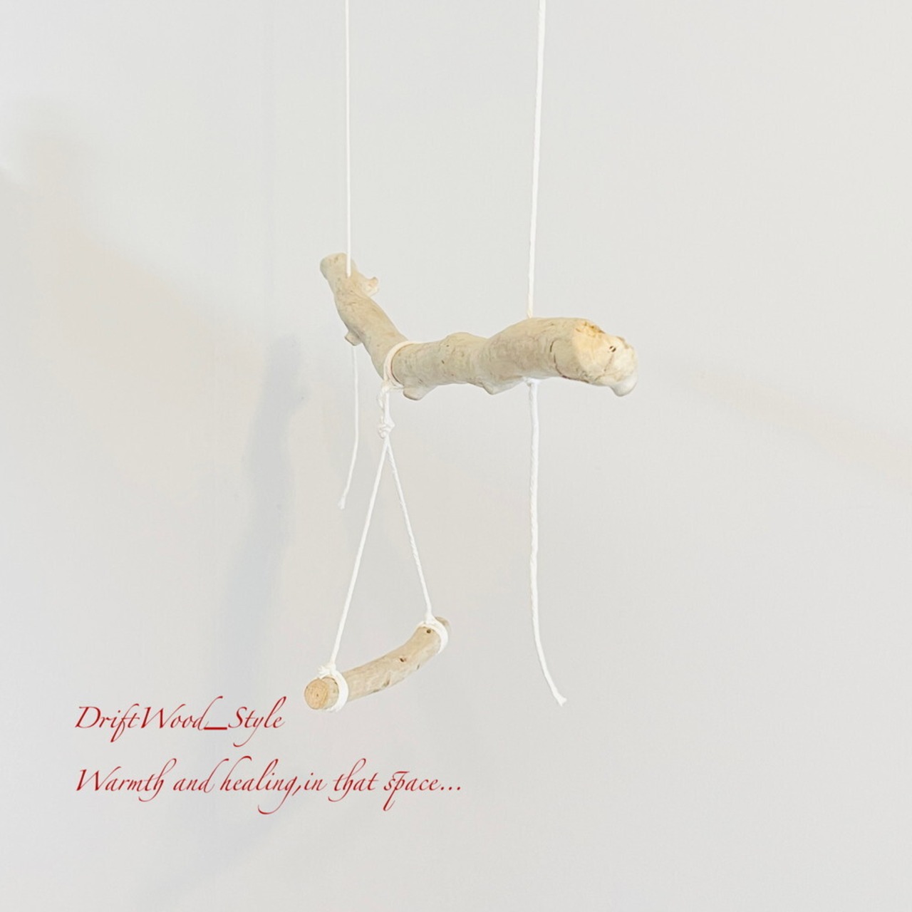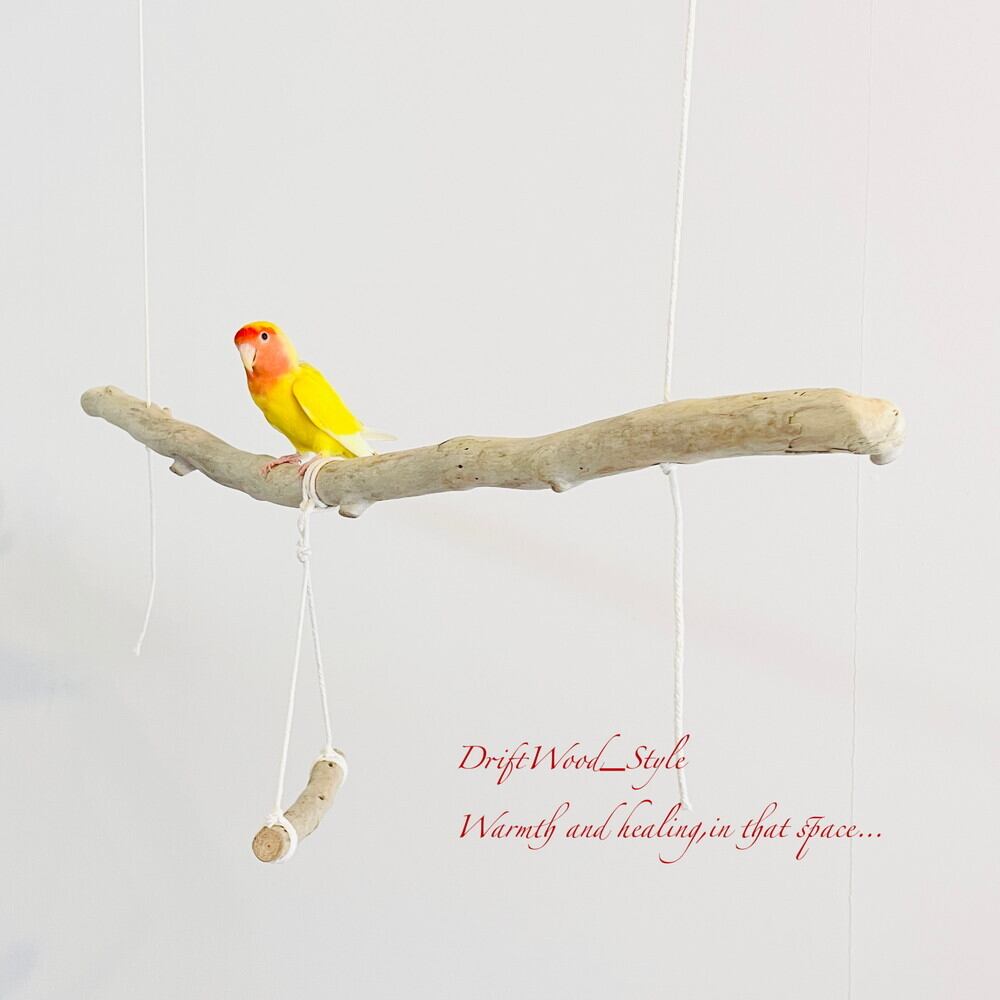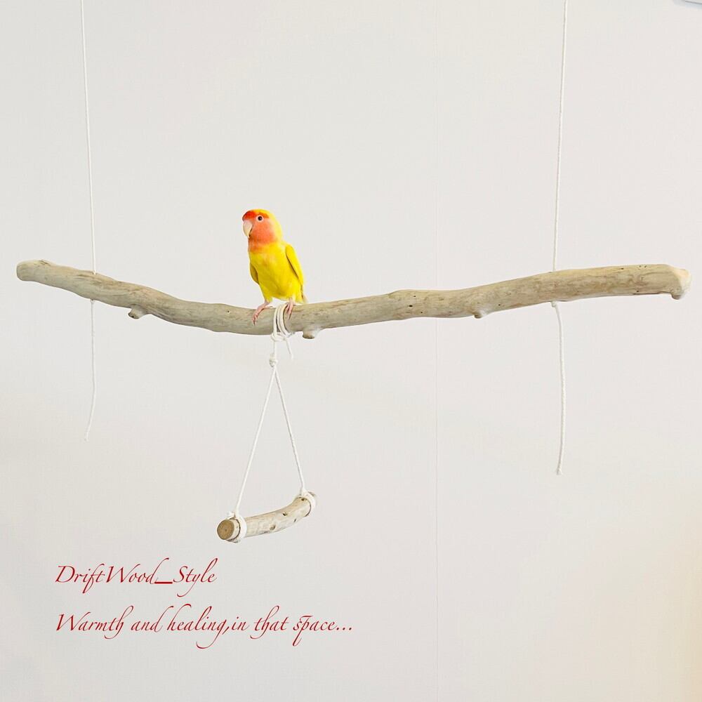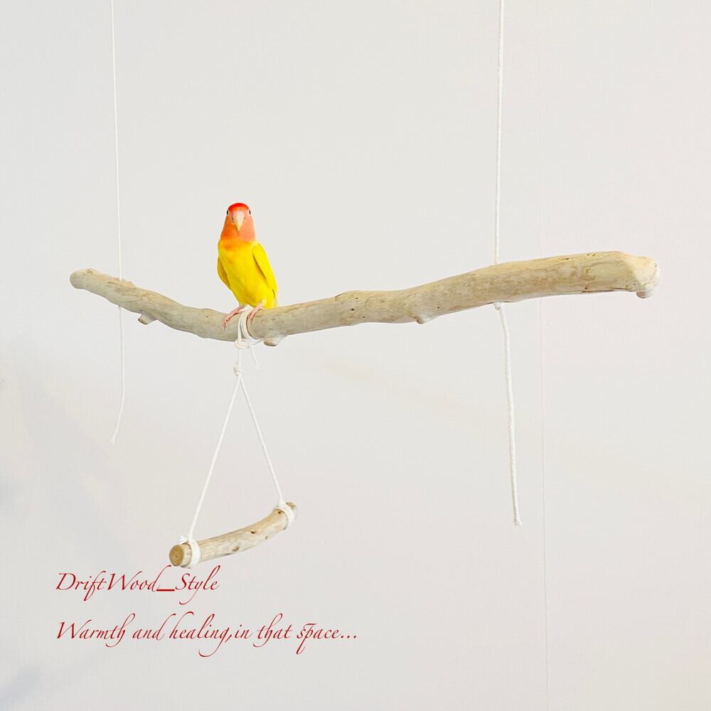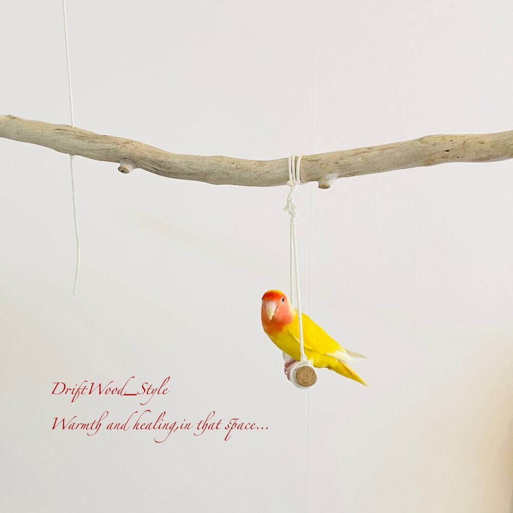 長い流木枝で小鳥が遊べる吊り下げタイプの止まり木です。