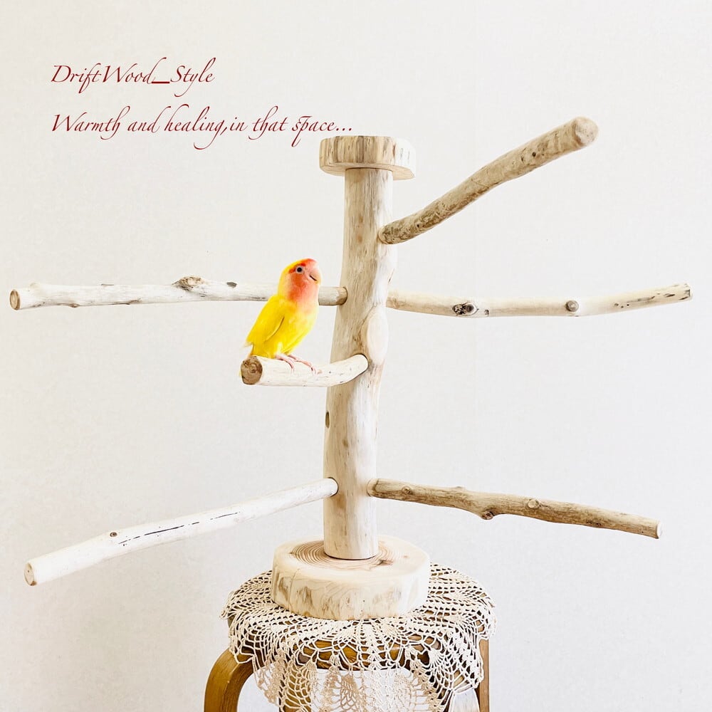 鳥がかじっても問題ない,安心して使えるナチュラルな天然流木で作成しています。