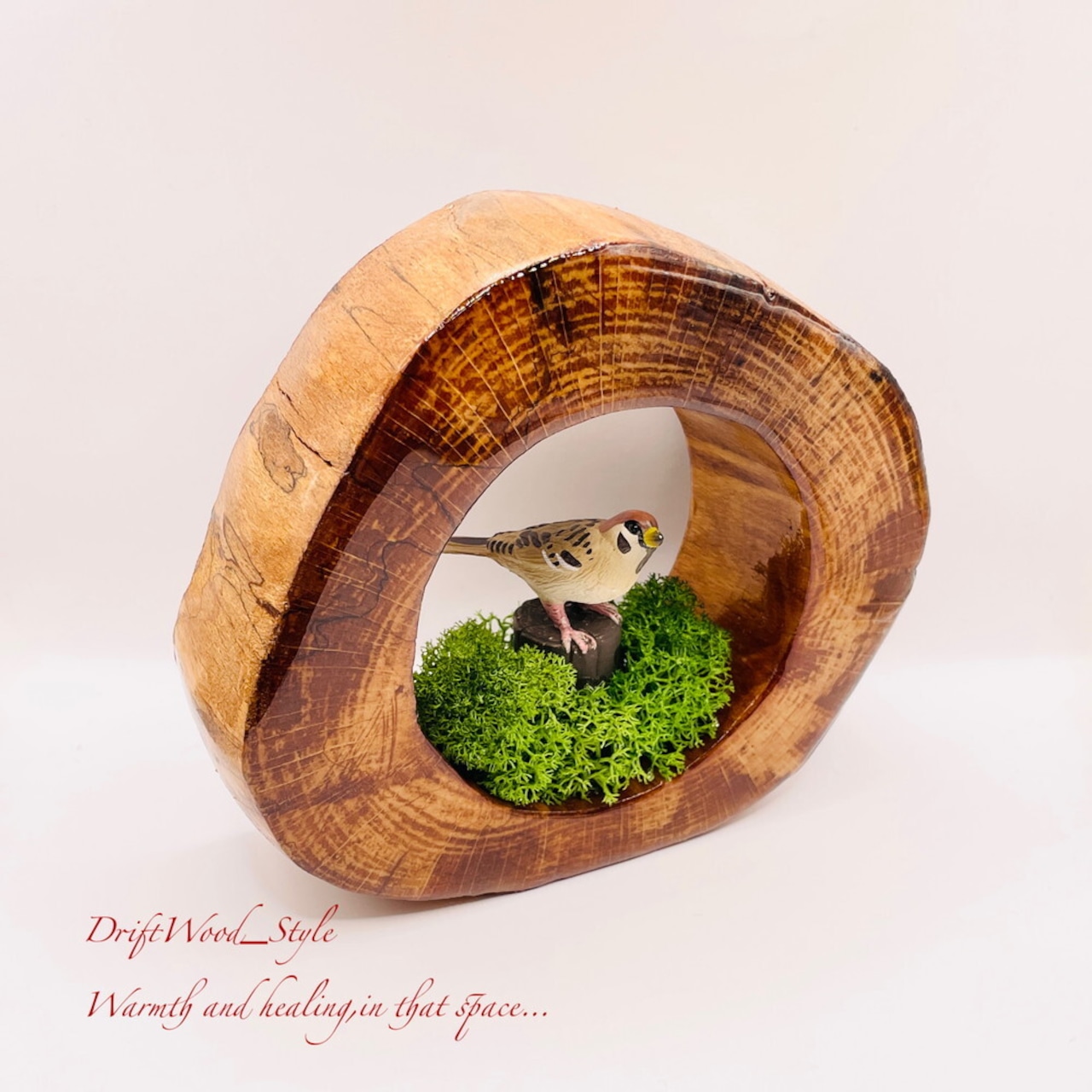 一つ限りの流木アート 枝にとまるスズメ ジオラマ 流木 フィギュア 置物 インテリア レジン 鳥 N3