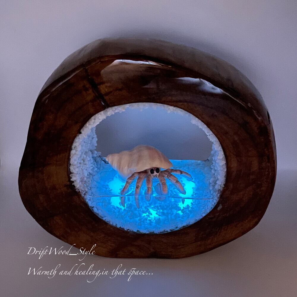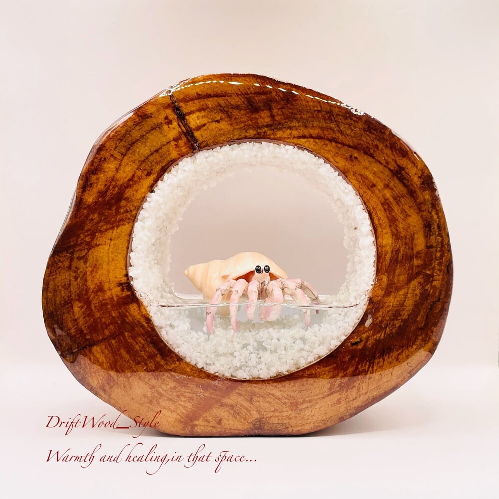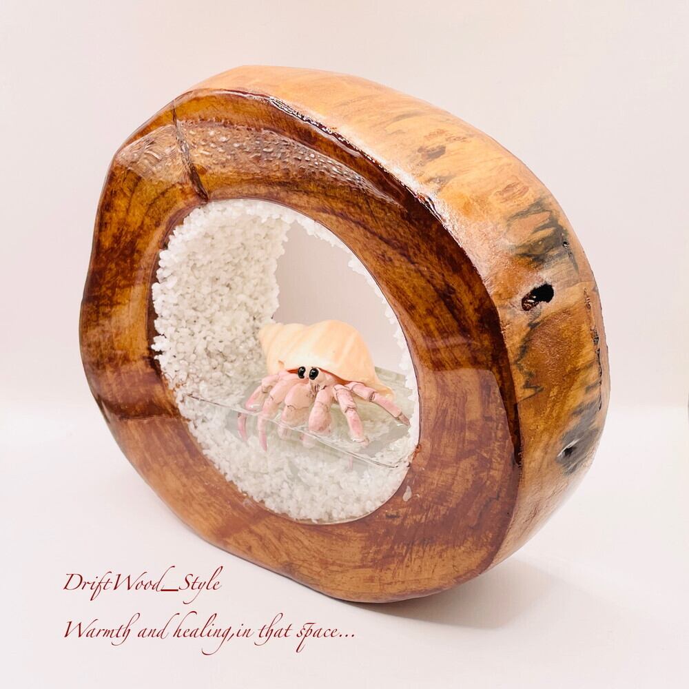 海の世界を閉じ込めた流木アート 浅瀬を歩くヤドカリ 水中ジオラマ 流木 オブジェ アクアリウム N3