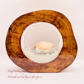 流木と海の世界を結び付けて表現するために作成したレジンアートです。