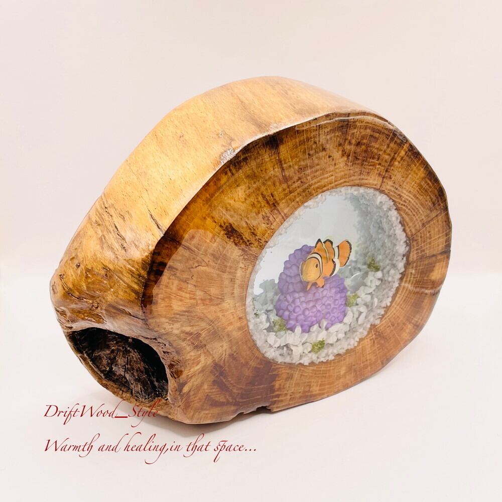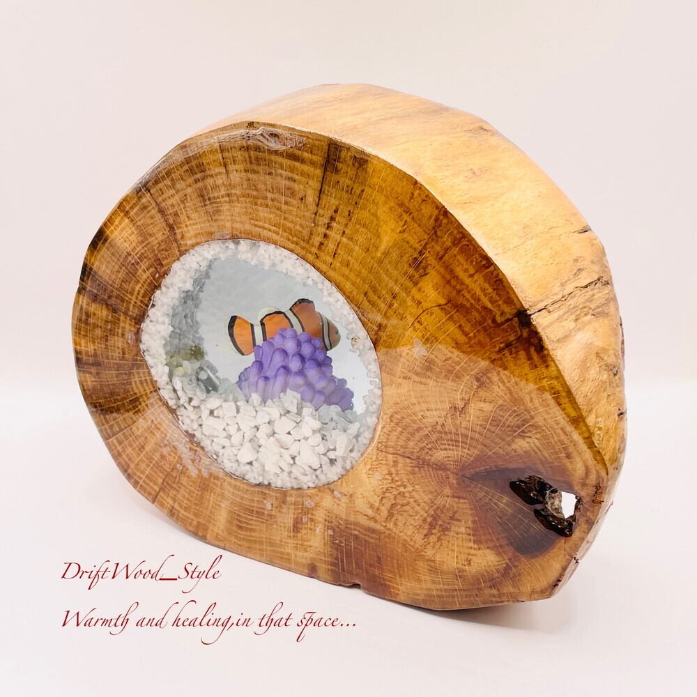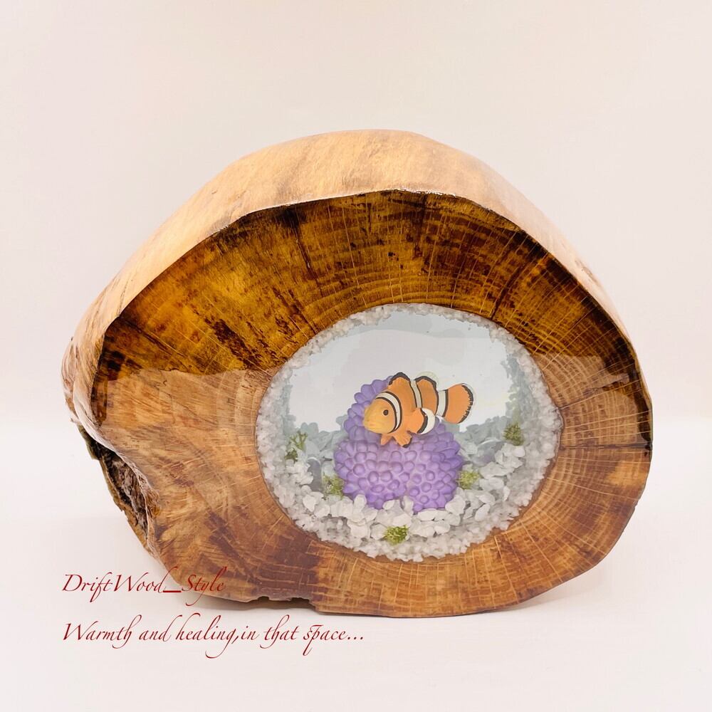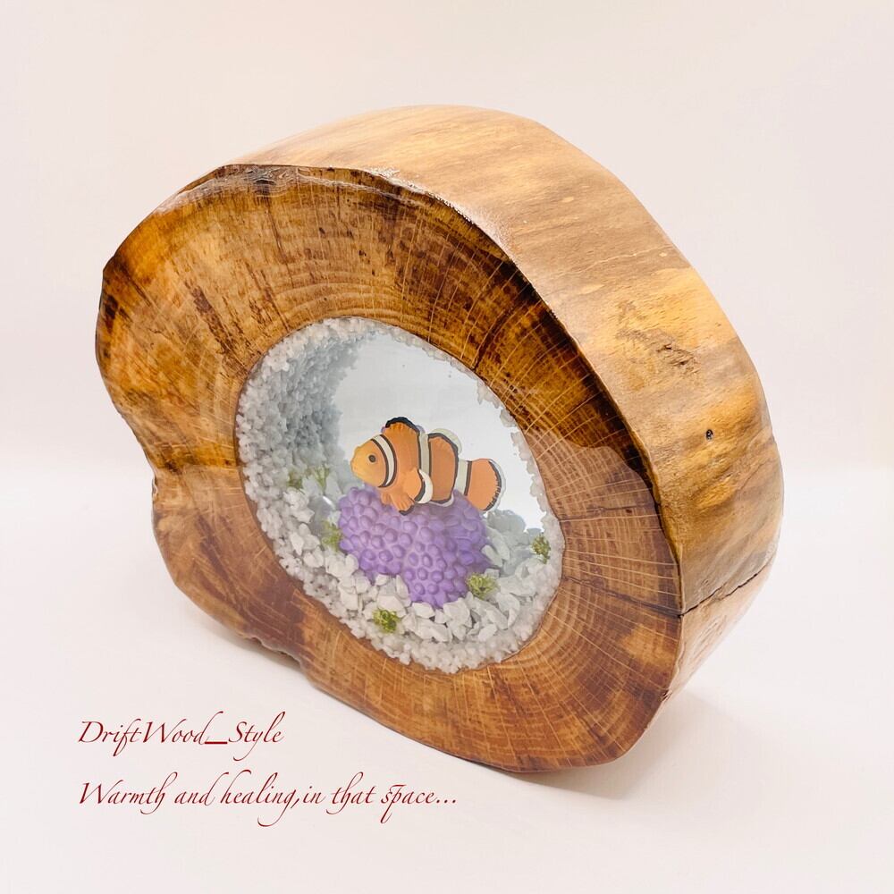 海の世界を閉じ込めた流木アート カクレクマノミ 水中ジオラマ 流木 レジン テラリウム アクアリウム インテリア N9