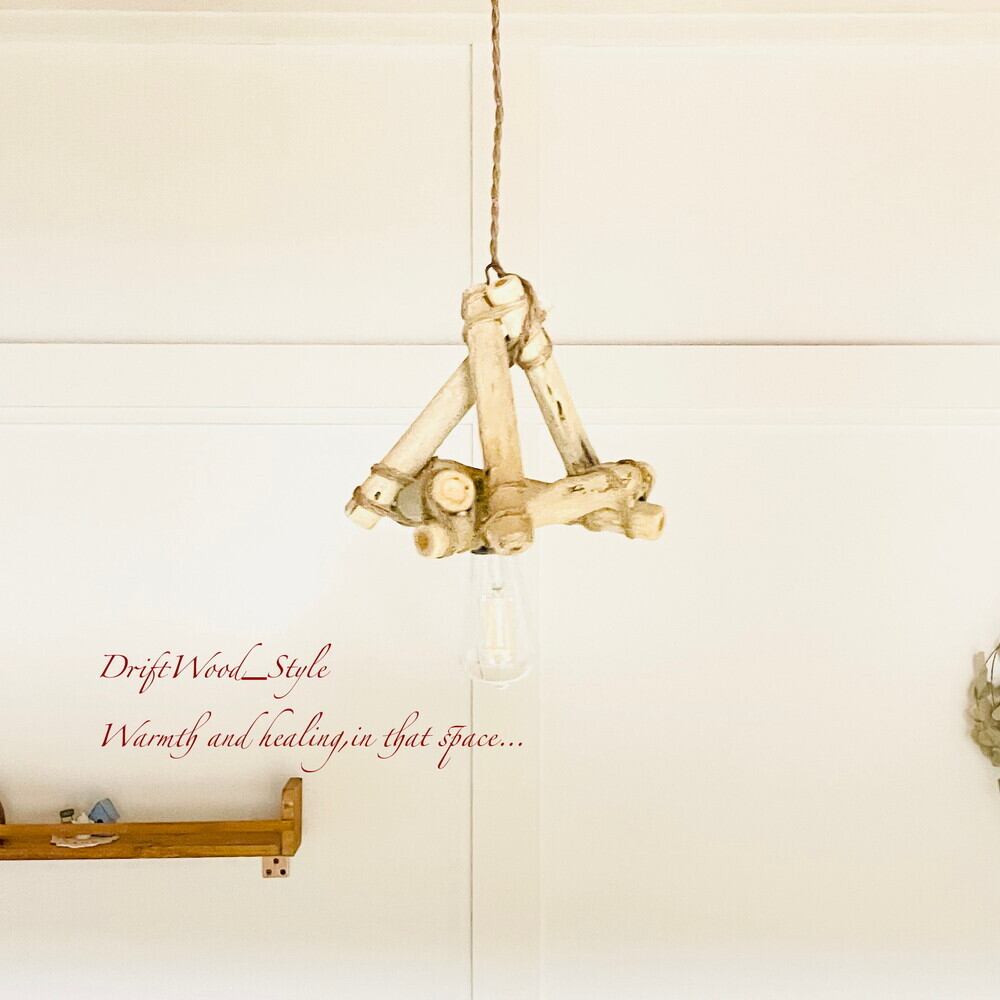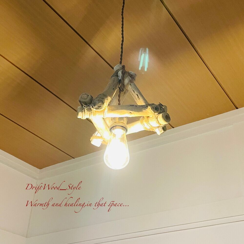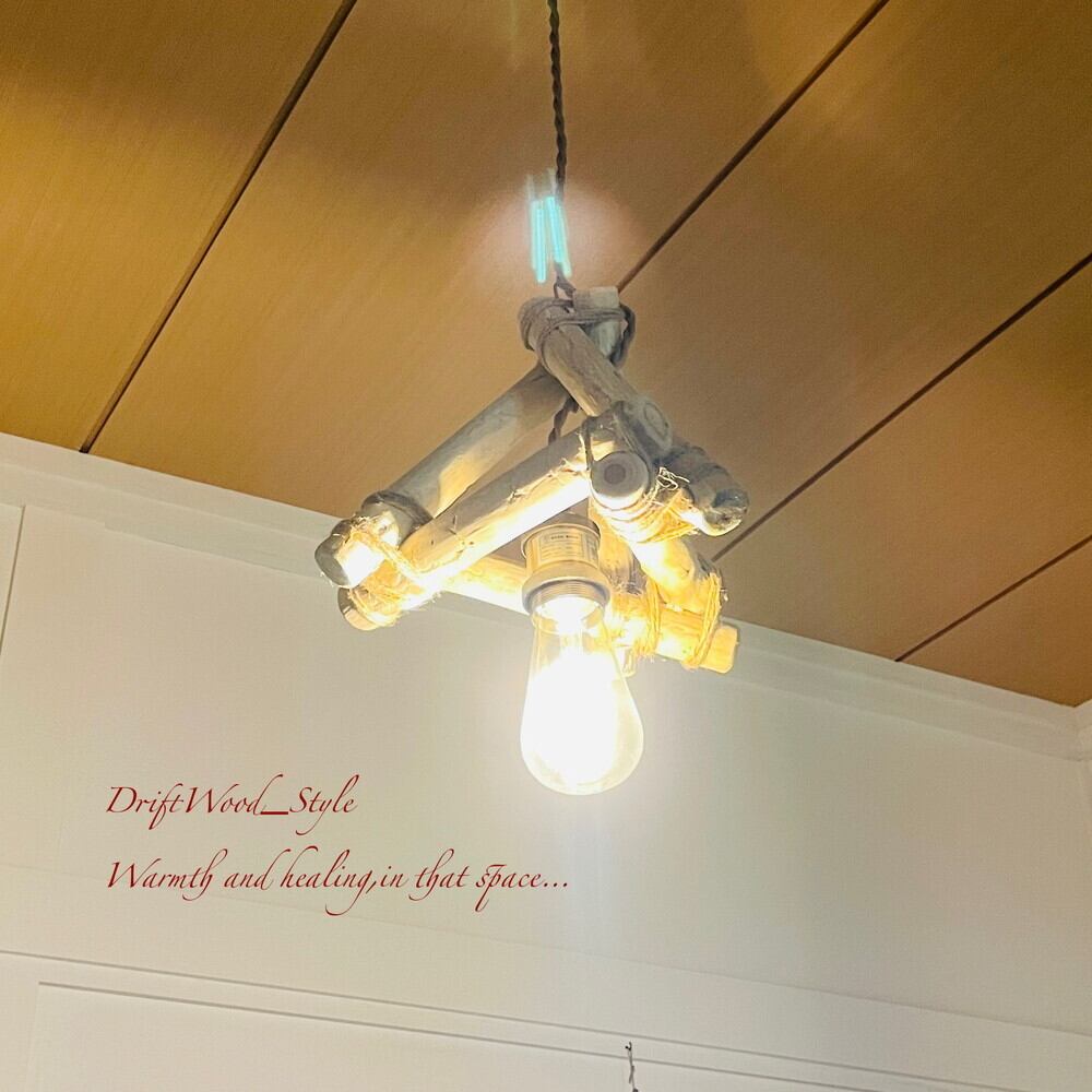 部屋の照明が流木になるとログハウスのような雰囲気になり,部屋全体の印象が変わります。