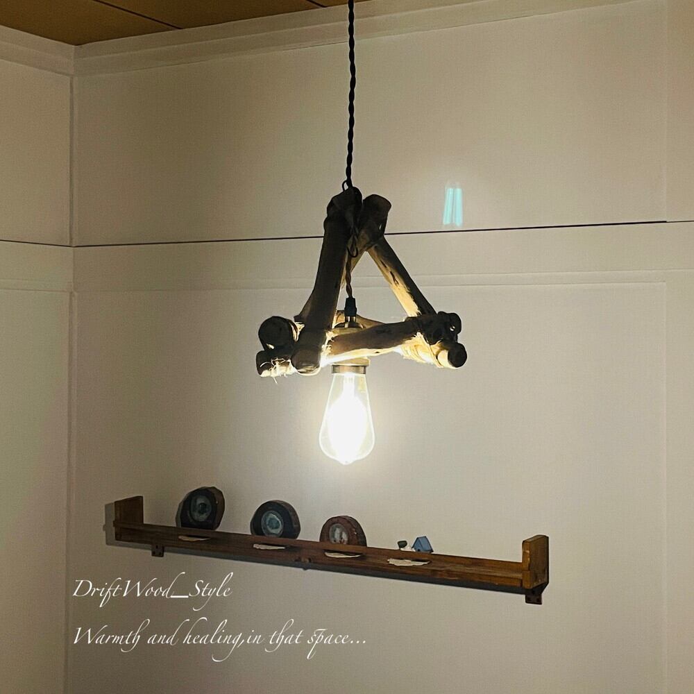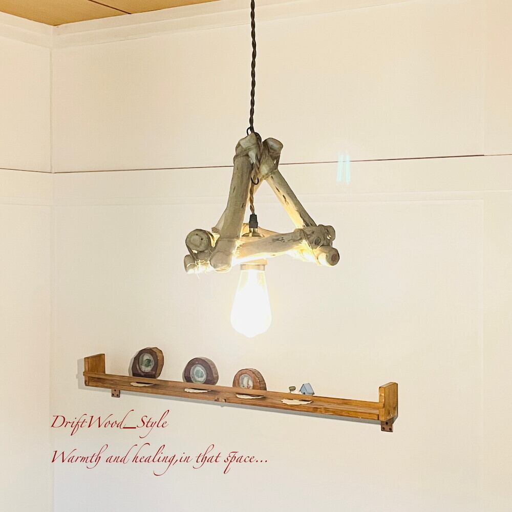 流木のシェードがレトロな雰囲気を醸し出し,味わい深い照明となっています。
