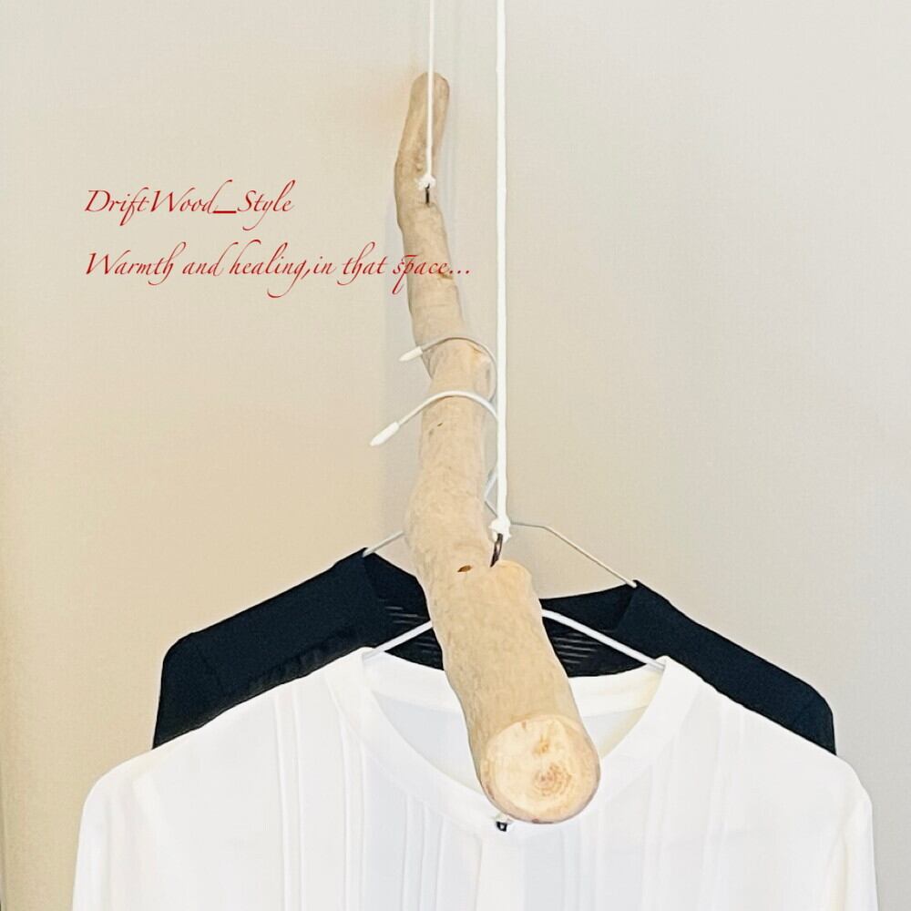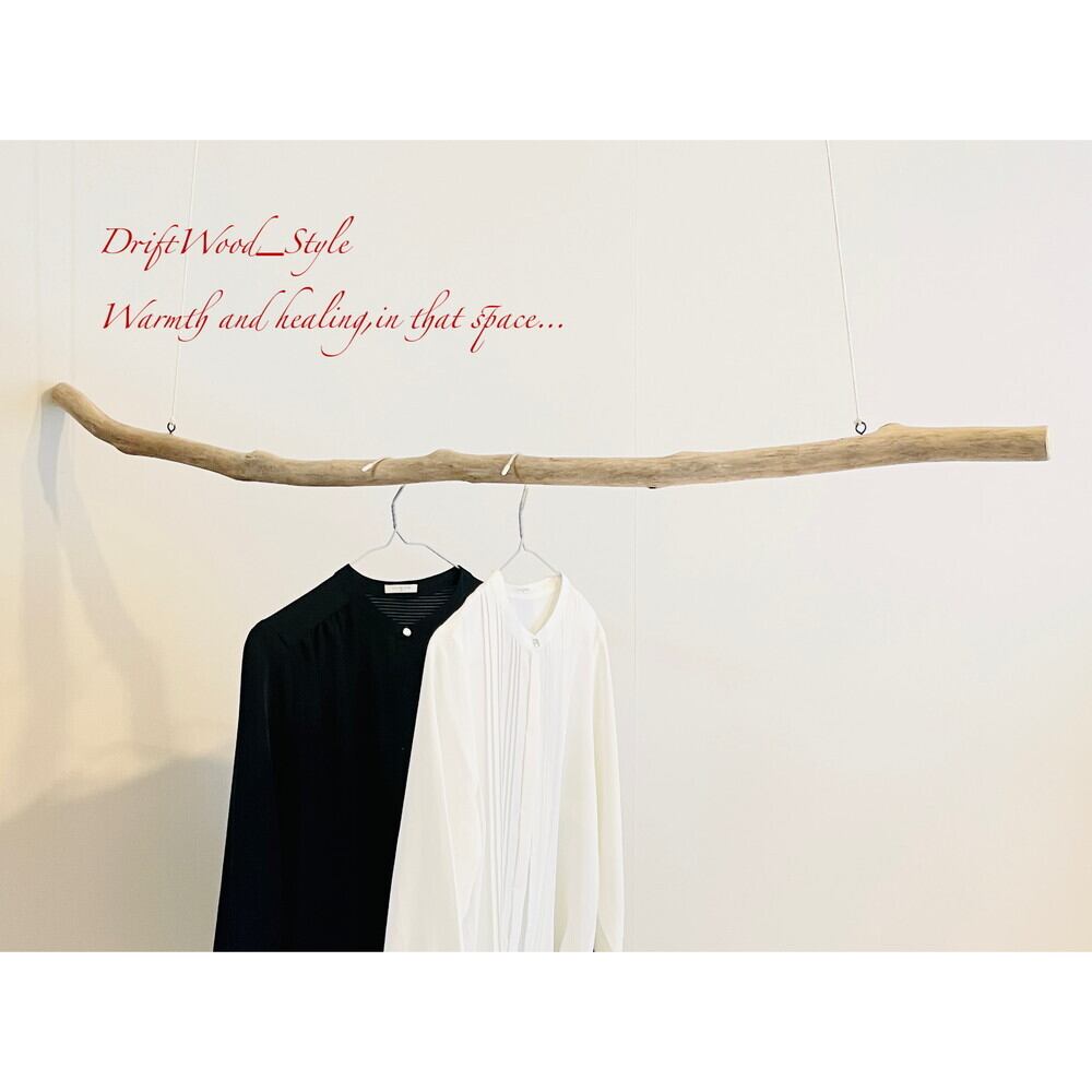 シンプルで真っすぐな大型流木のハンガーラックです。