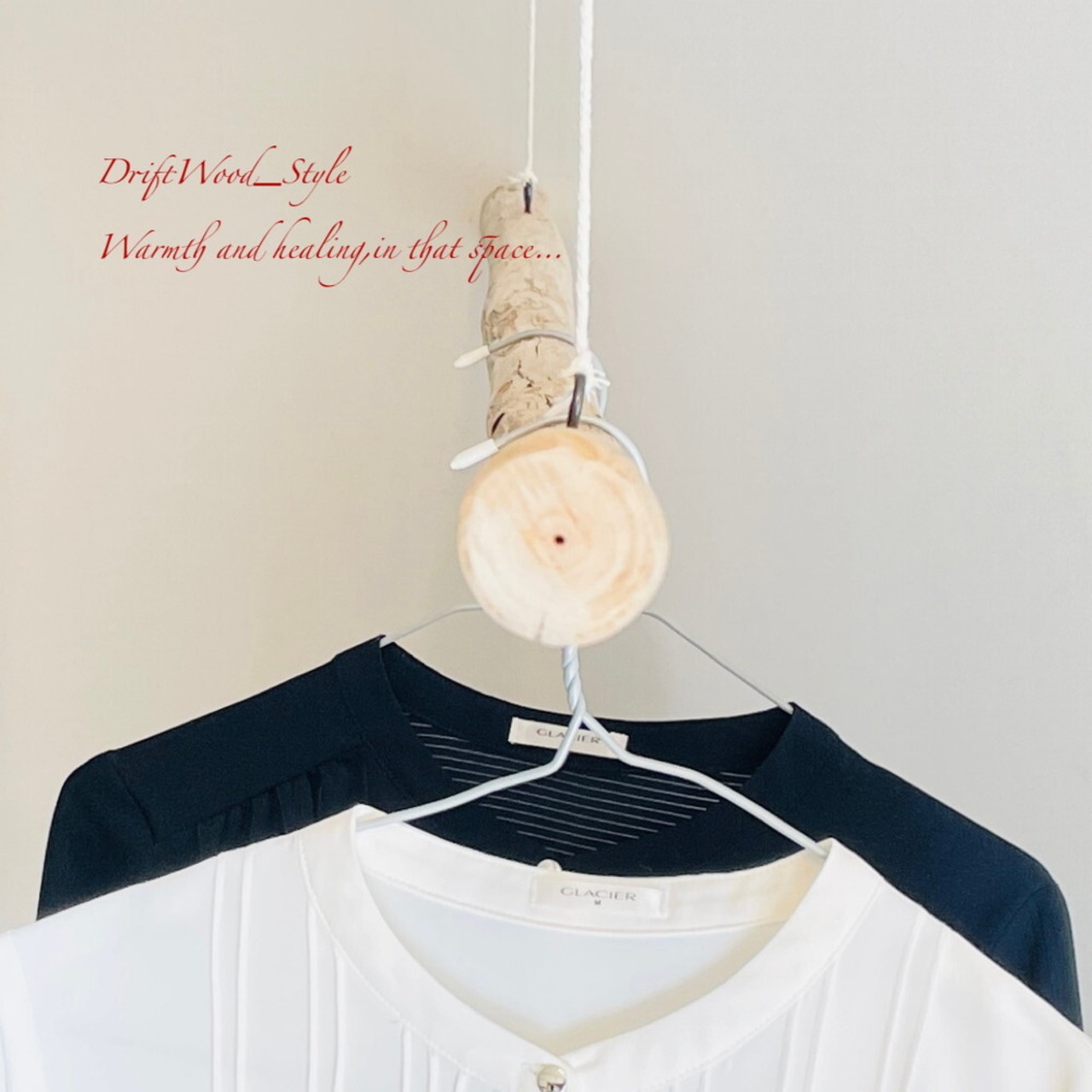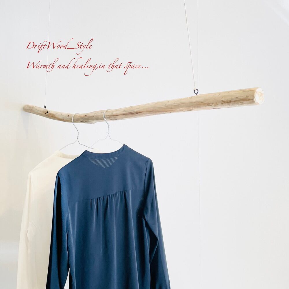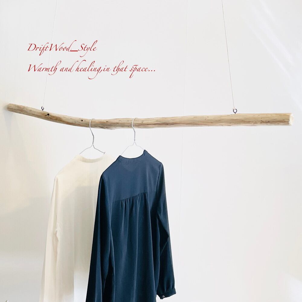 シンプルで真っすぐな大型流木のハンガーラックです。