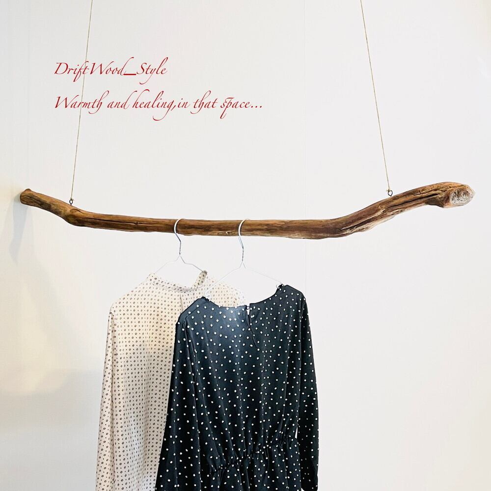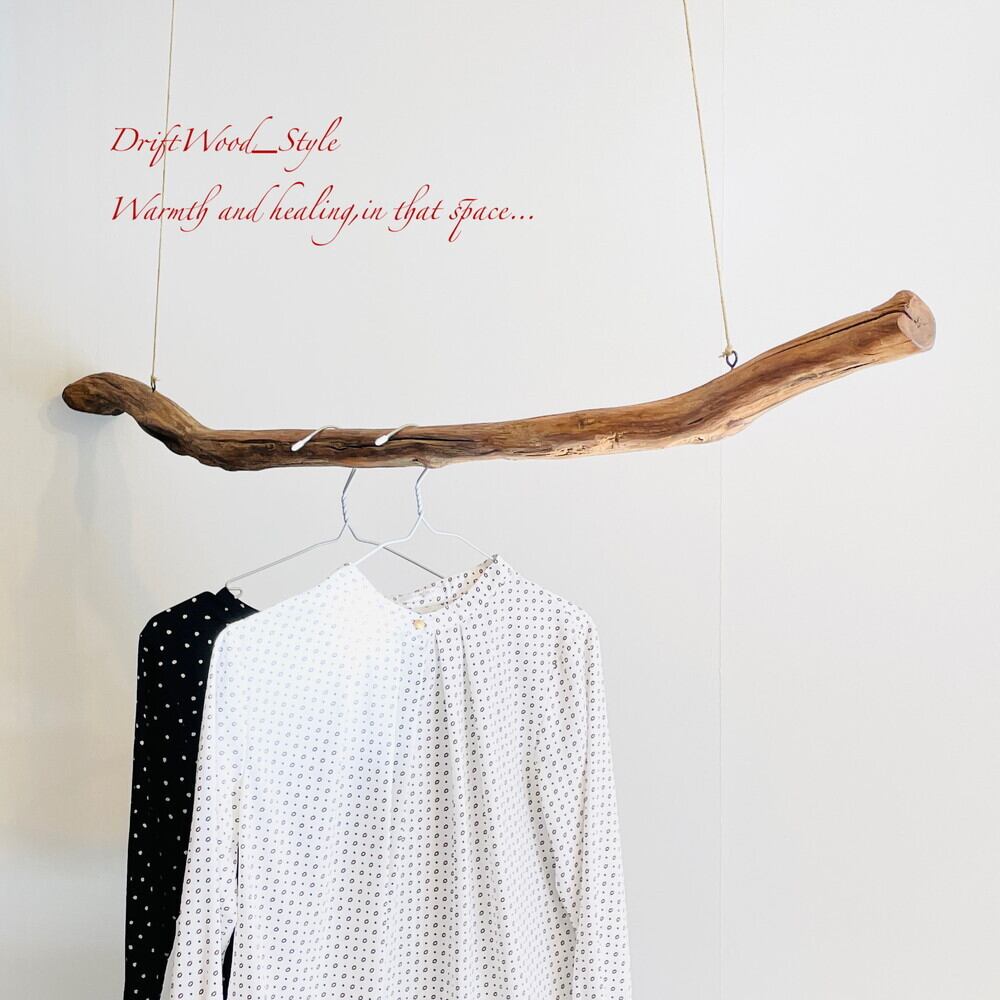 シンプルで真っすぐな大型流木のハンガーラックです。