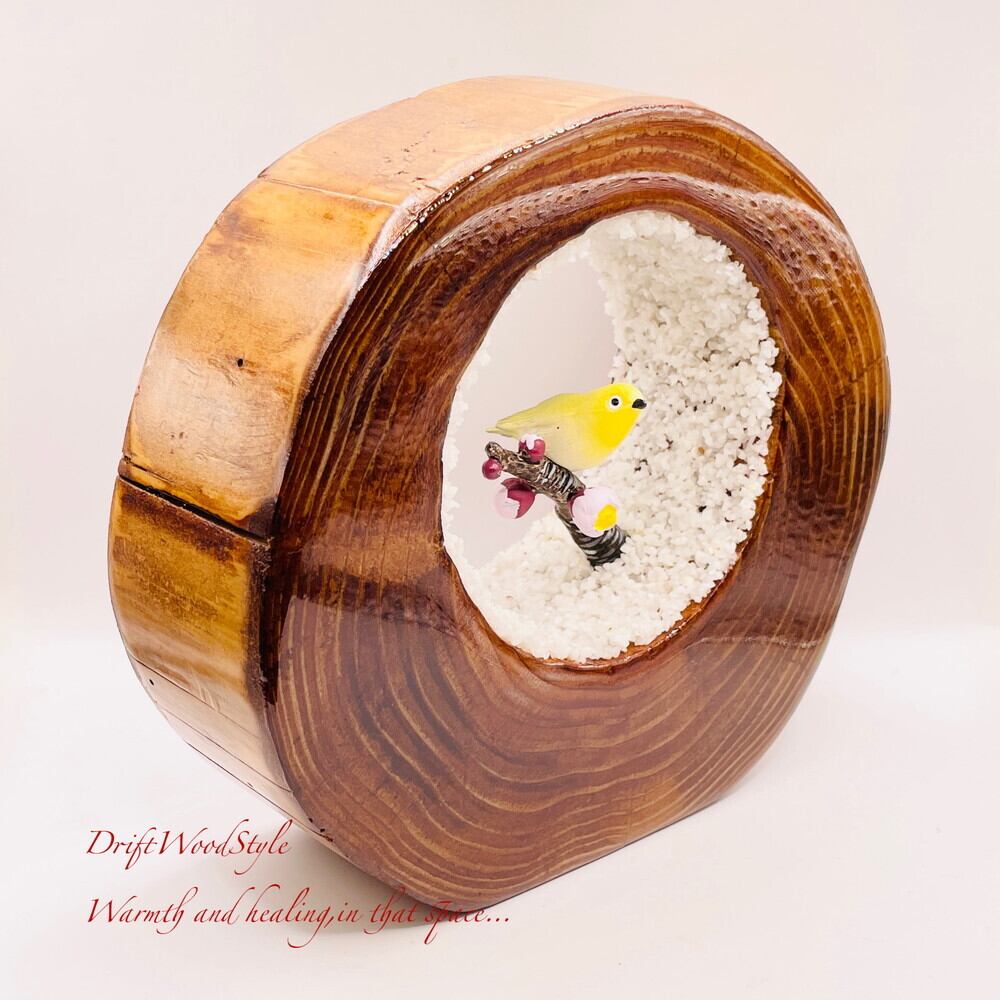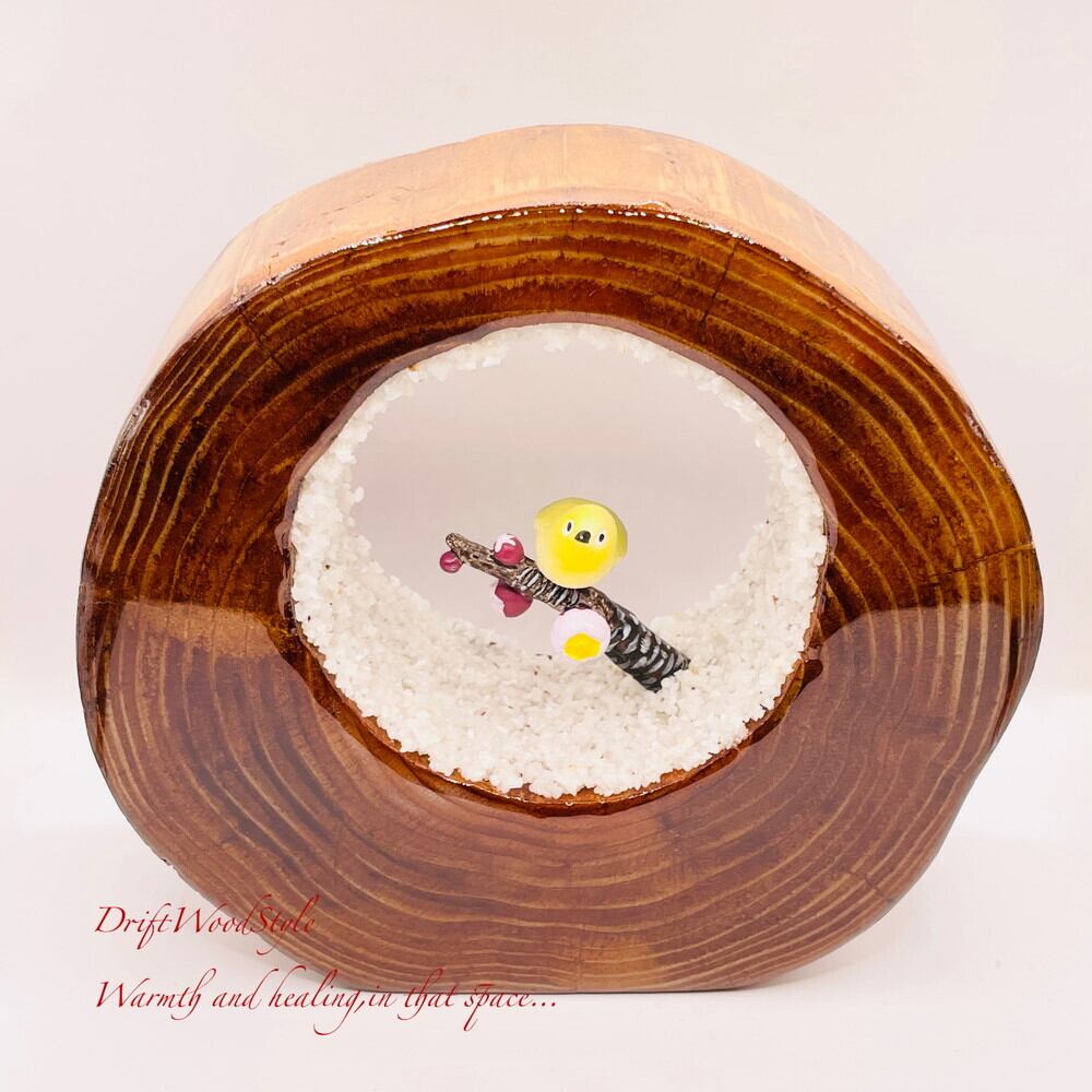 一つ限りの流木アート 梅の枝にとまるメジロ ジオラマ 流木 フィギュア 置物 鳥 インテリア レジン 生き物 N5