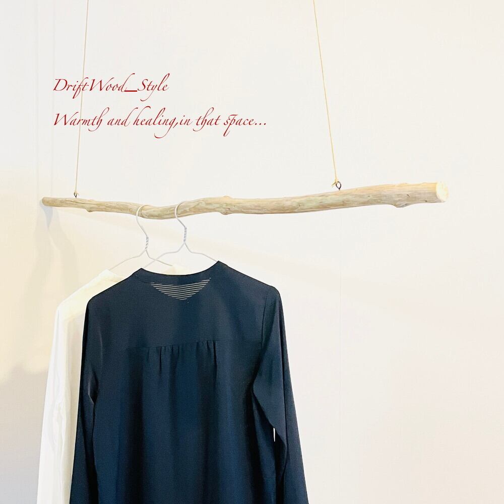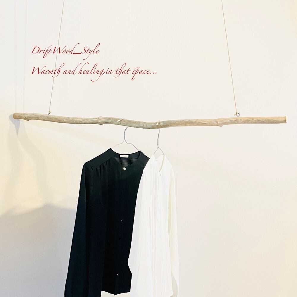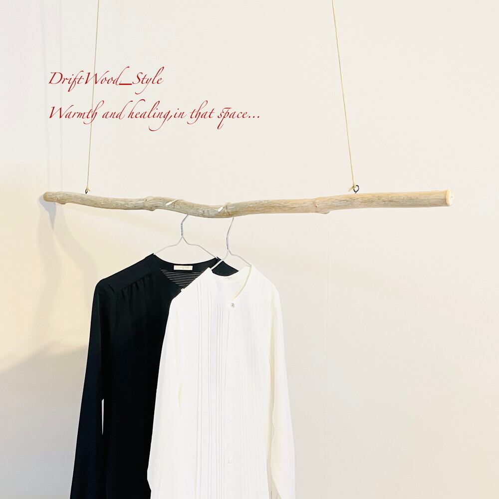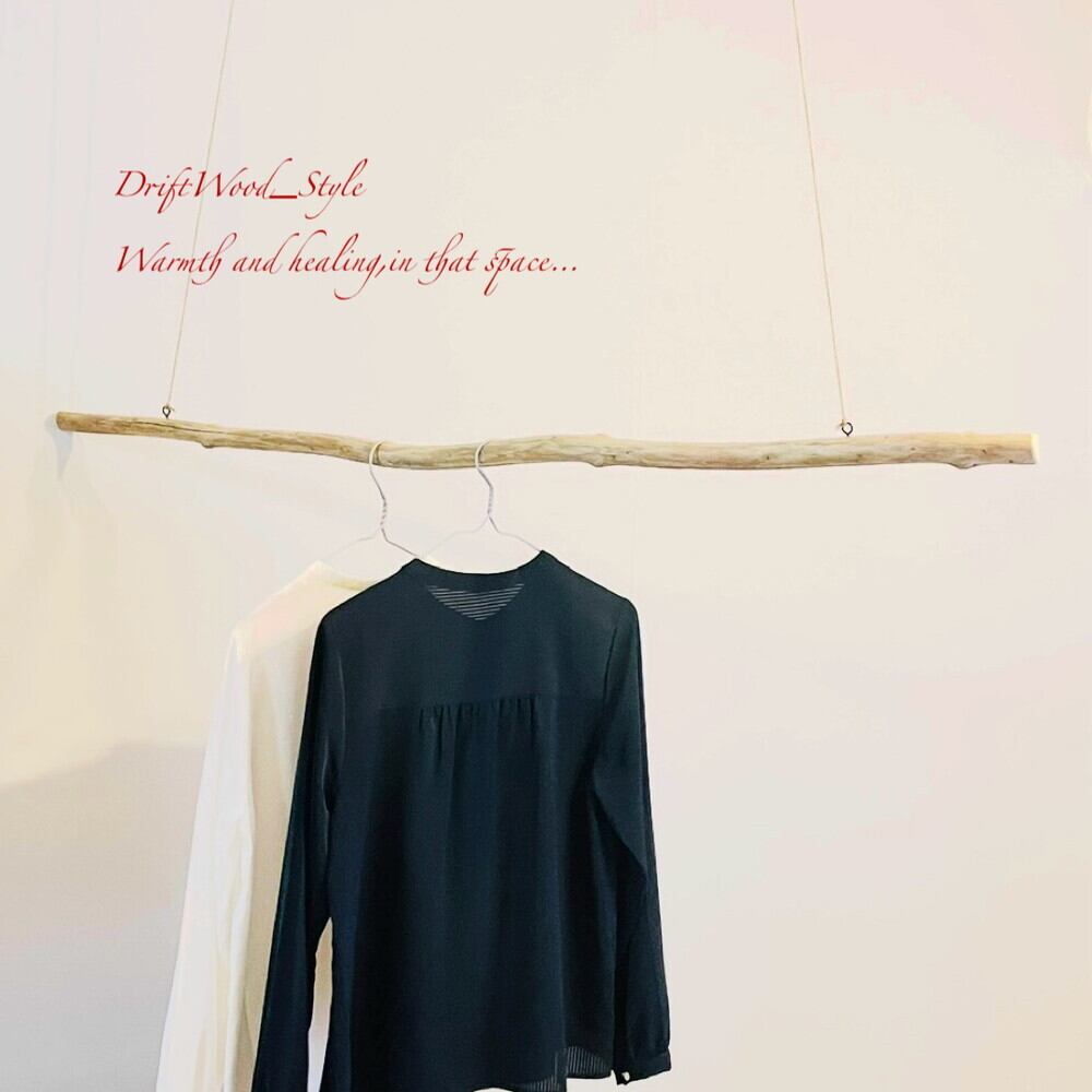 シンプルで真っすぐな大型流木のハンガーラックです。