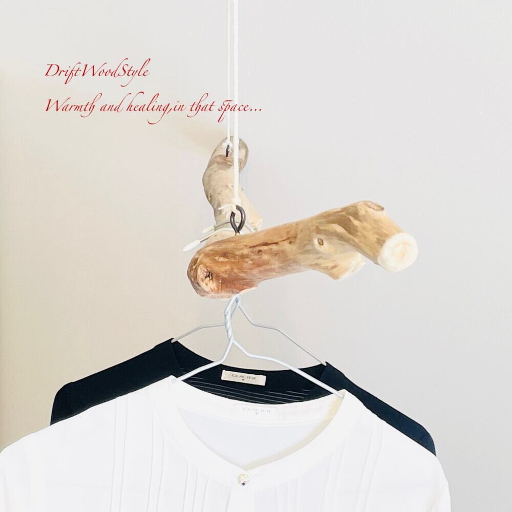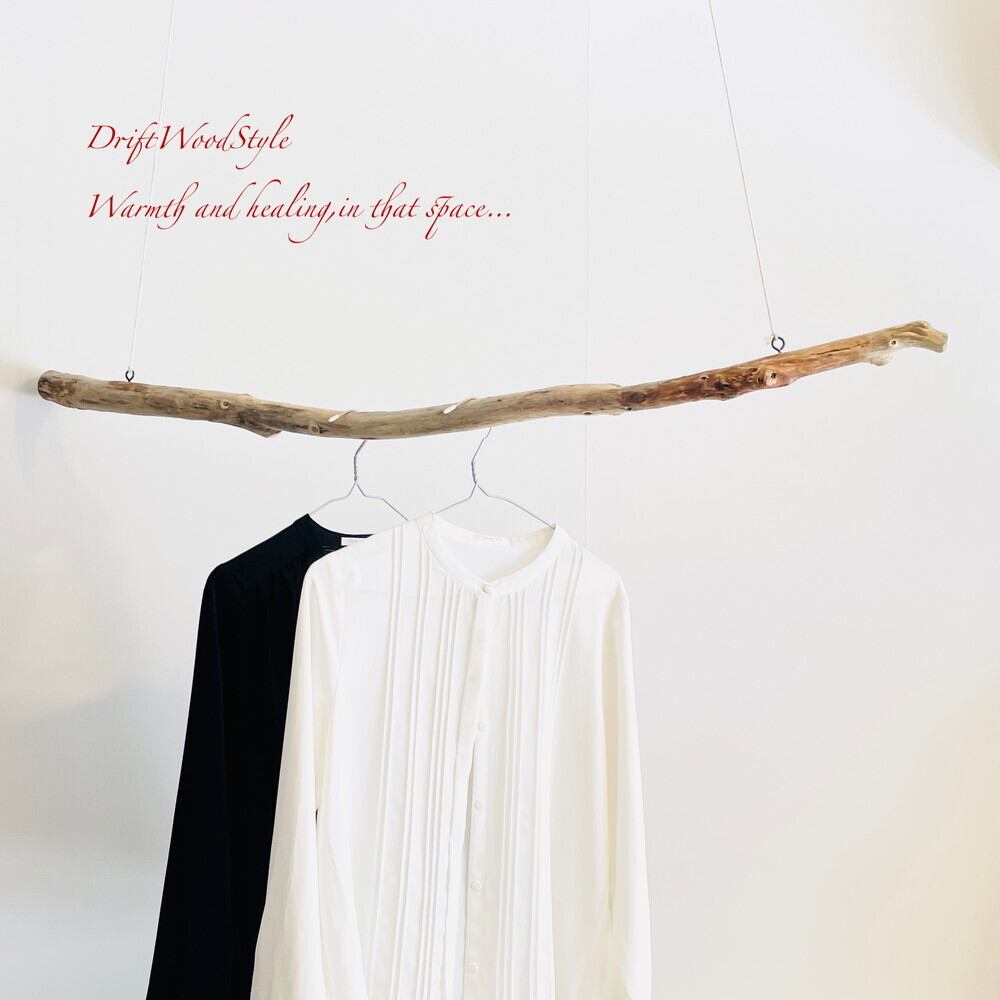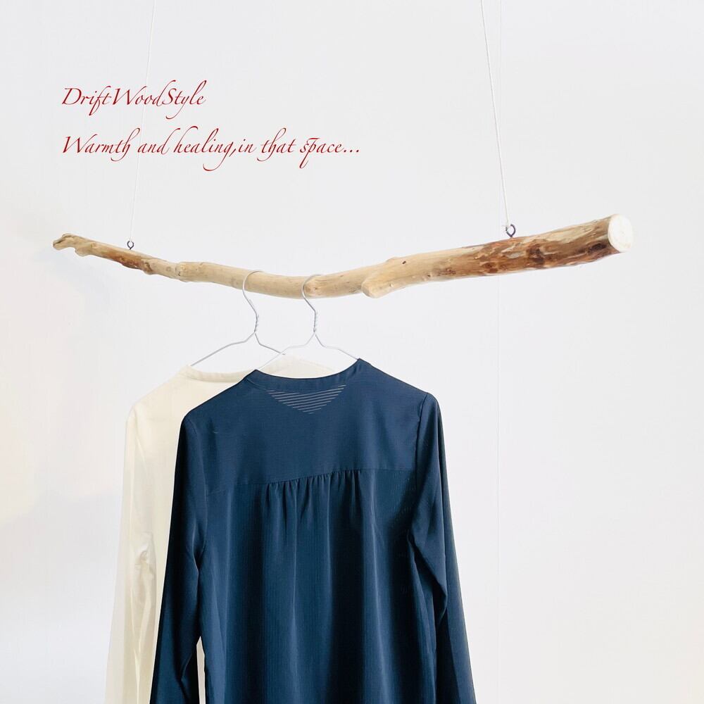 シンプルで真っすぐな大型流木のハンガーラックです。