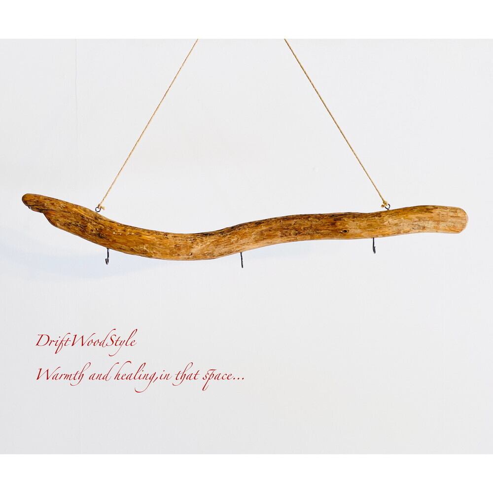 横幅が約70cmのサイズの流木で,フックを3個取り付けています。